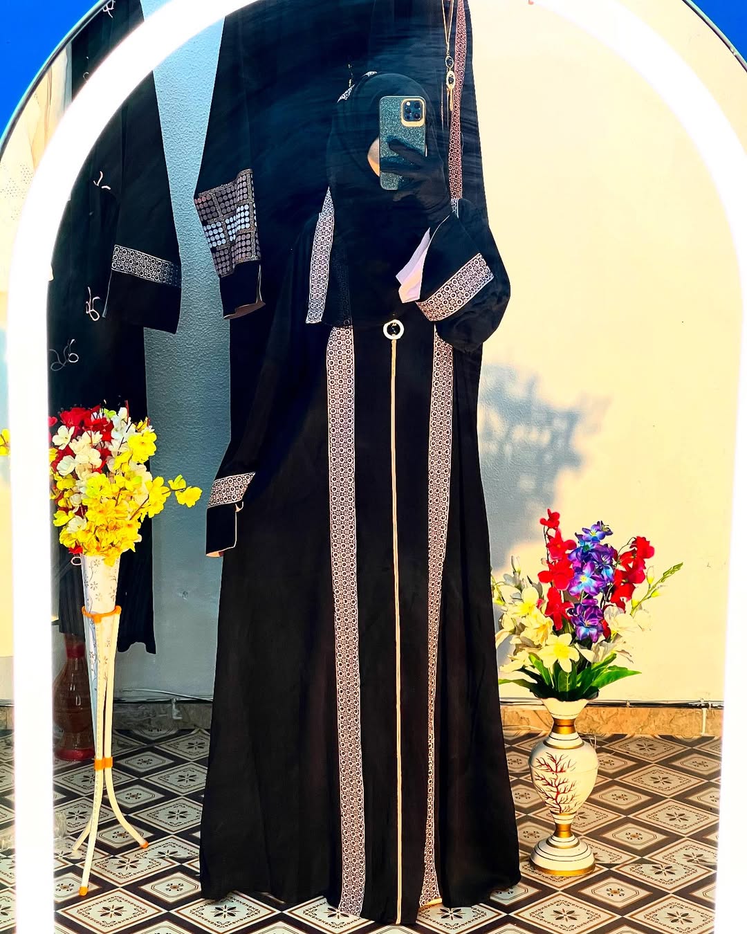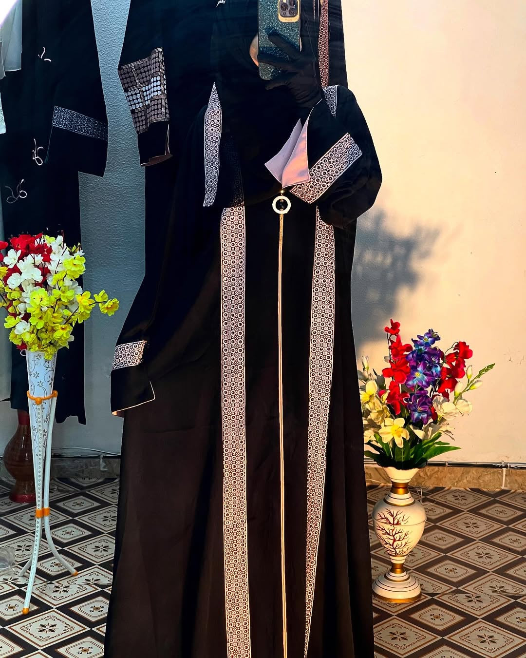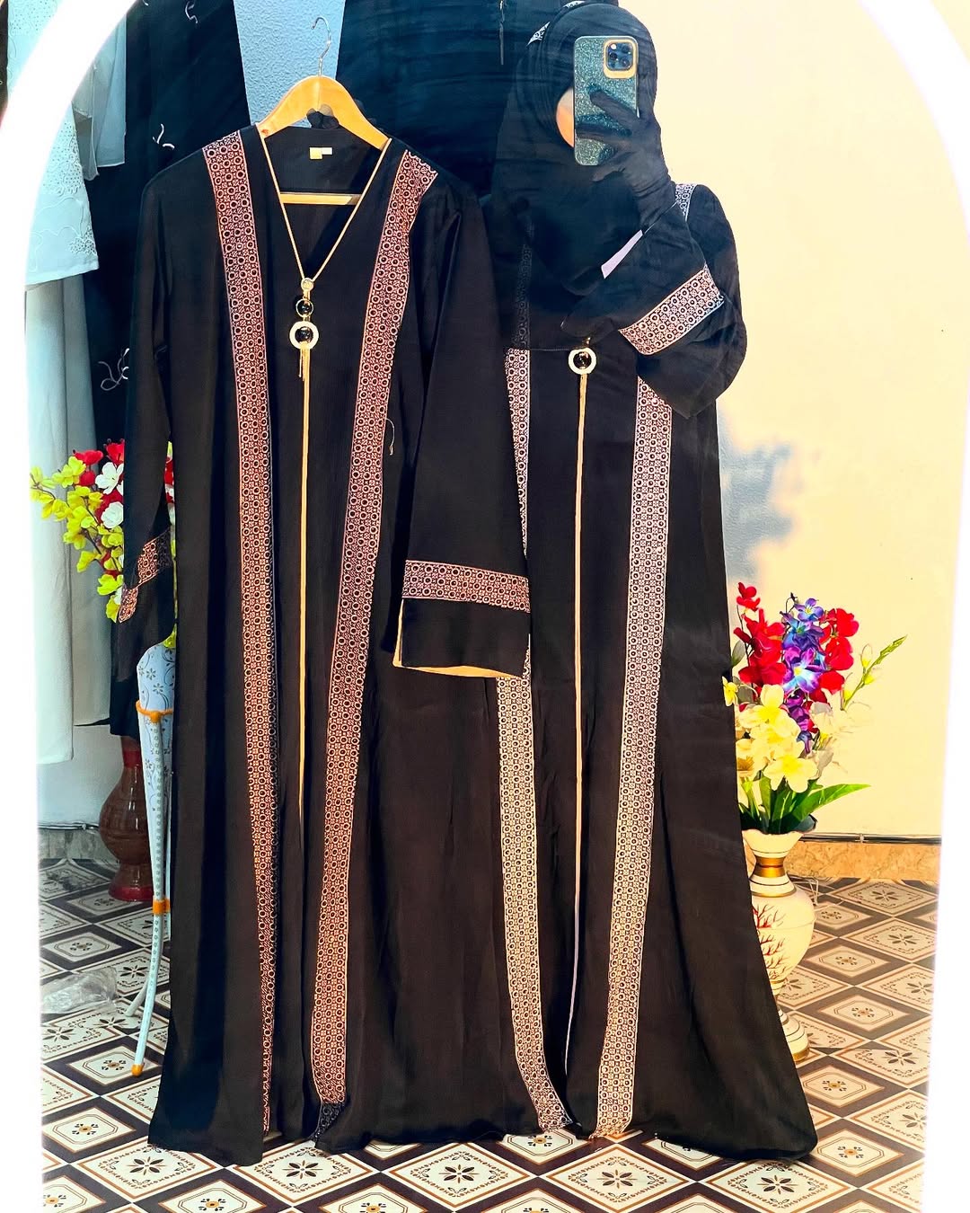 This luxurious black open abaya is designed with intricate embroidery along the front, sleeves, and borders, giving it a regal and sophisticated touch. The gold zipper closure adds a modern element, making it perfect for both casual and special occasions like Ramadan, Eid, Umrah, or daily wear. The lightweight and breathable fabric ensures all-day comfort while maintaining modesty and elegance.