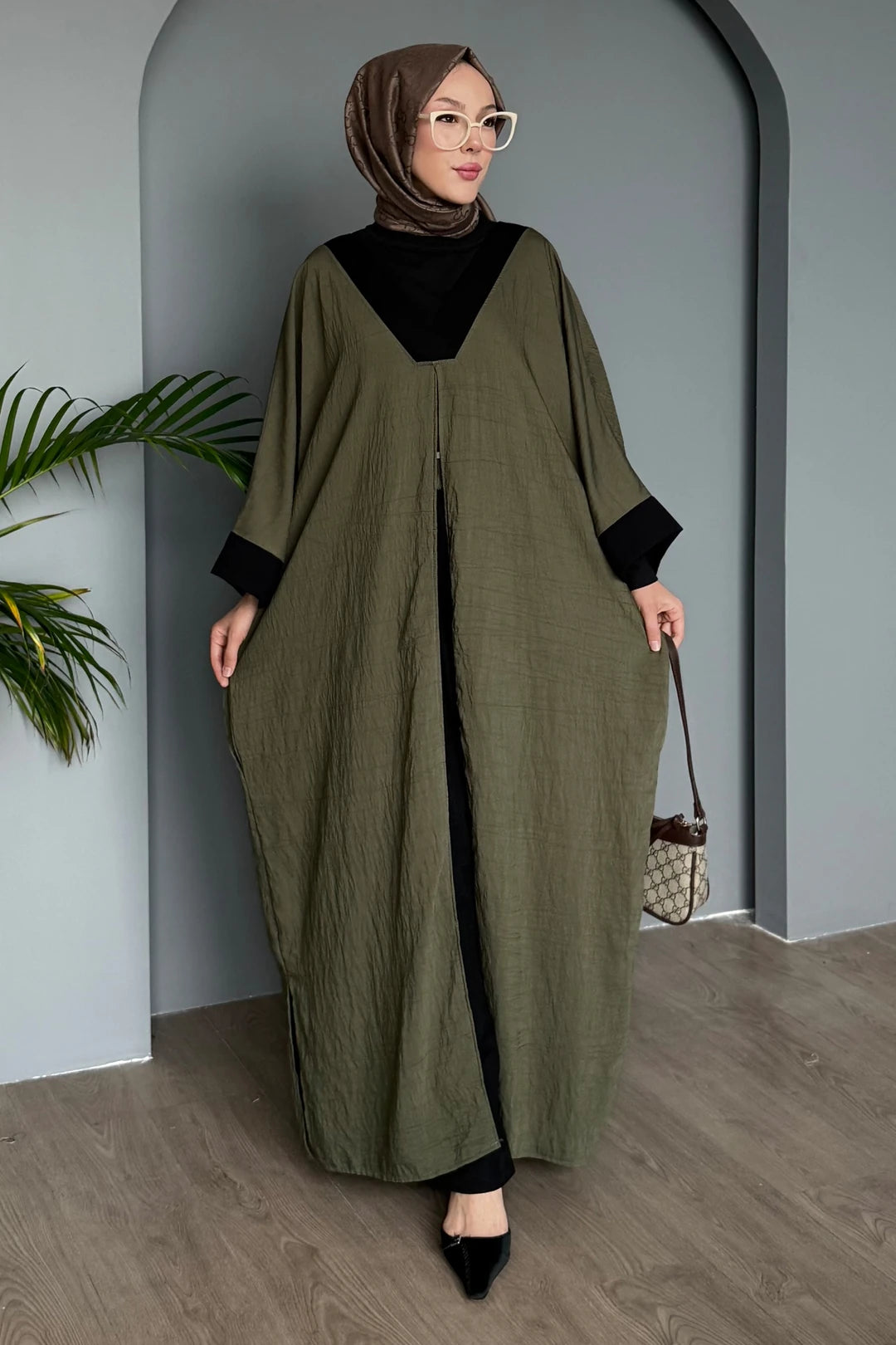 Embrace timeless modesty with this elegant 3-piece co-ord set, designed to keep you stylish and comfortable. The set includes a sleek black inner dress, a flowy Bottle Green outer kimono-style overlay, and complete, coordinated look. The relaxed fit and rich earth tones create a sophisticated aesthetic that's perfect for casual outings, workdays, or evening events. Made from soft, breathable fabric, this ensemble offers all-day ease without compromising on style. Effortless elegance, all in one set.
